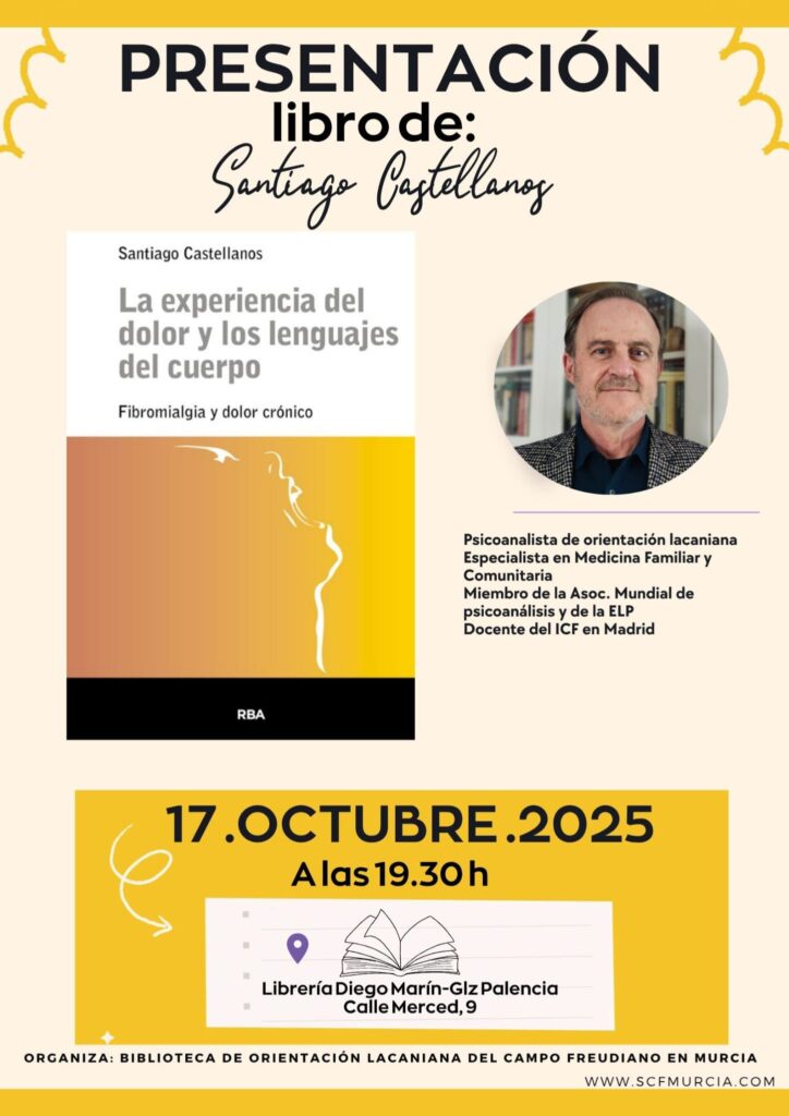 El próximo viernes, 17 de octubre a las 19:30 horas, tendremos con nosotros a Santiago Castellanos, psicoanalista en Madrid y Miembro de la ELP y